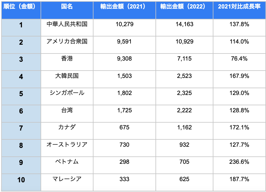 この表からも、ベトナムへの輸出が海外・アジア全体で捉えた場合にも重要だということが、おわかりいただけるのではないでしょうか。