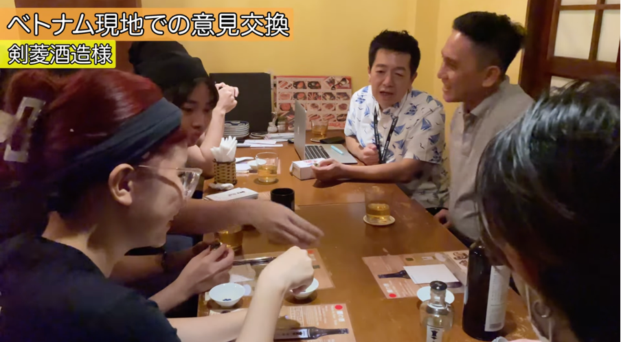 実際に酒造担当者の方にベトナムにきていただき、現地の販売員のベトナム人と意見交換をしていただく時間も大切にしています。